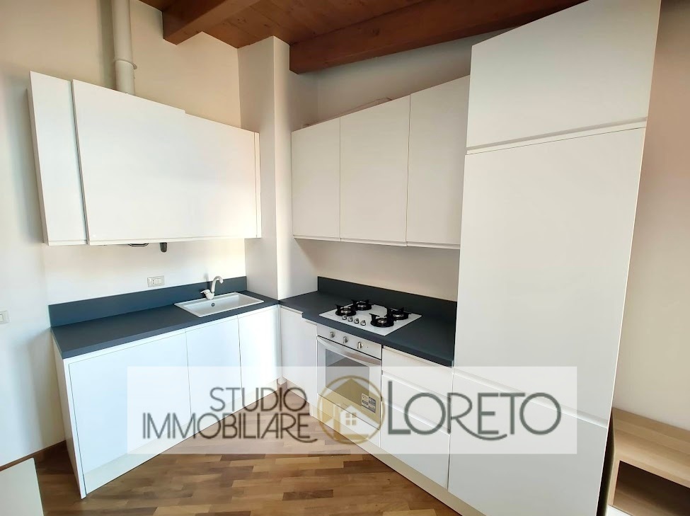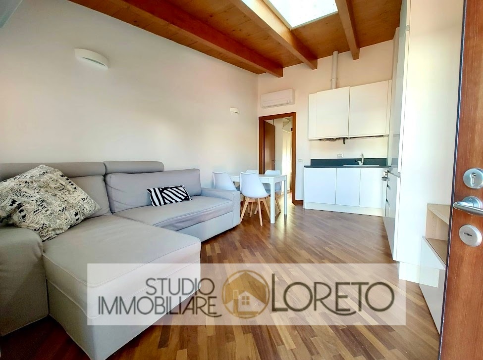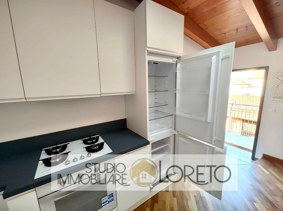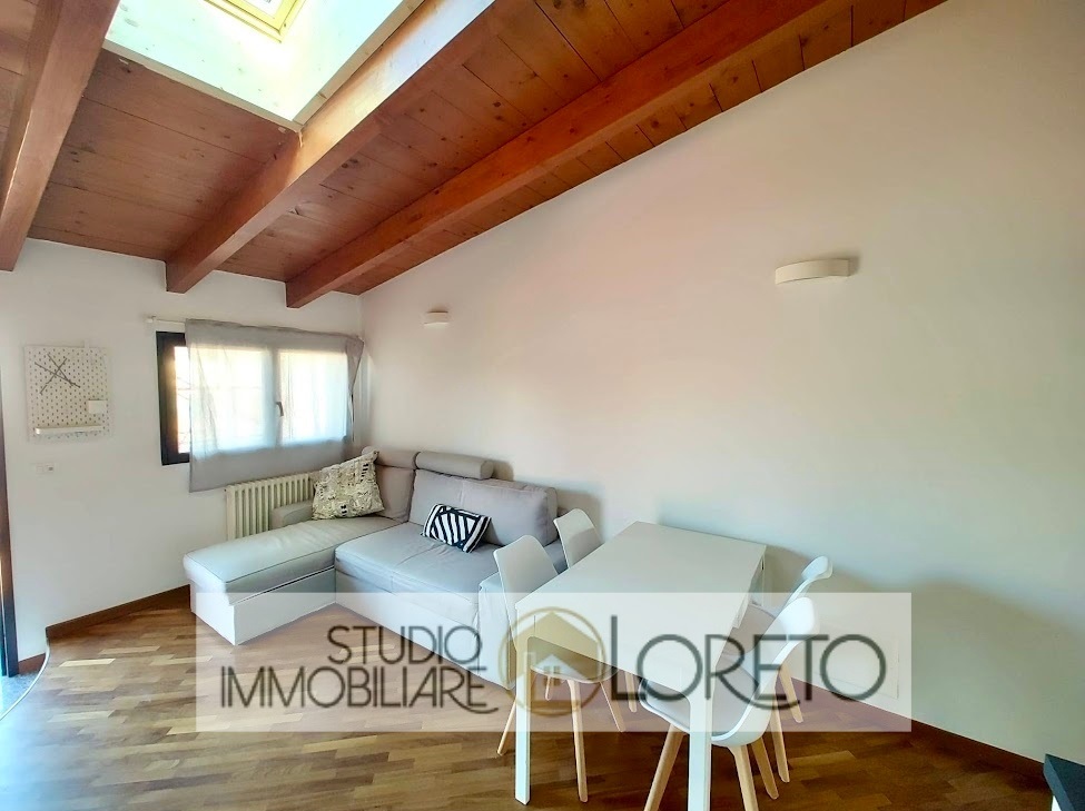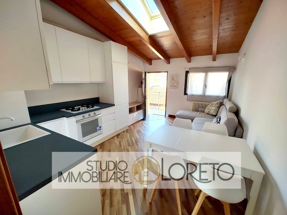 Ingresso su zona giorno con cucina recente a vista totalmente attrezzata, lavastoviglie inclusa; disimpegno, camera MATRIMONIALE e bagno finestrato (velux) con vasca e lavatrice.
