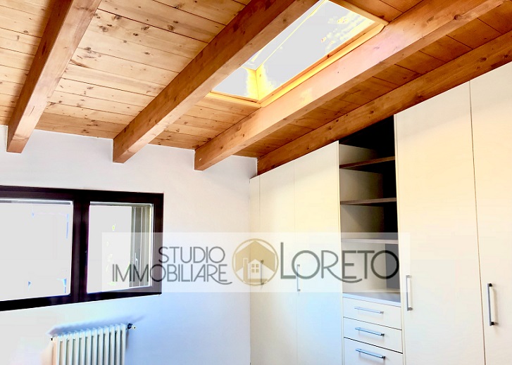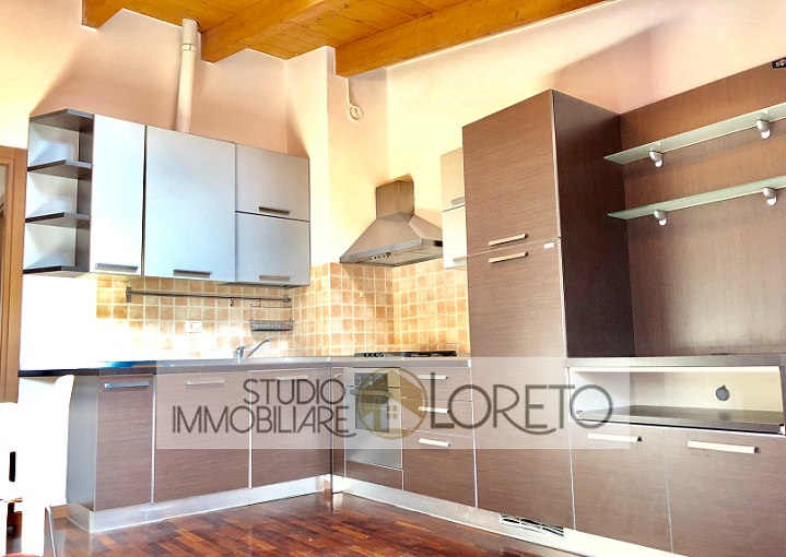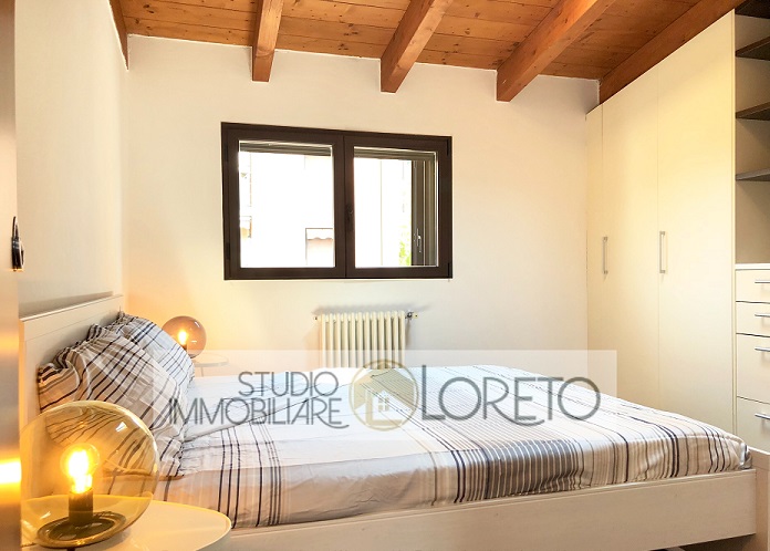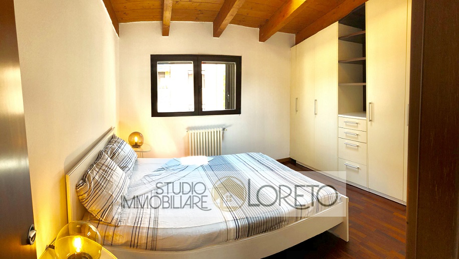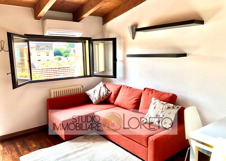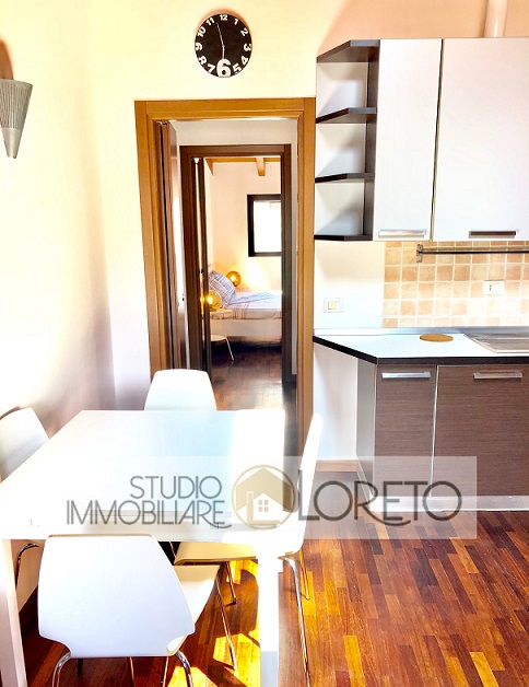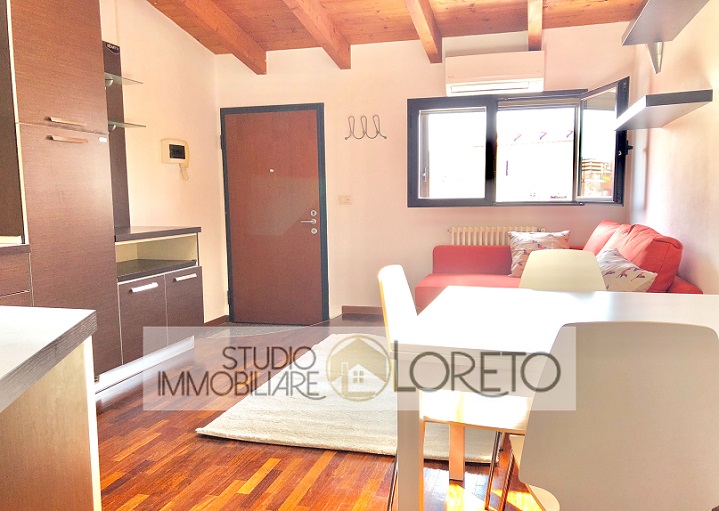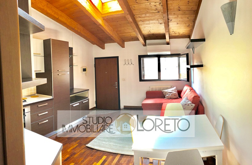 Ingresso su zona giorno con cucina a vista totalmente attrezzata, lavastoviglie inclusa; disimpegno, camera matrimoniale e bagno finestrato (velux) con doccia e lavatrice.