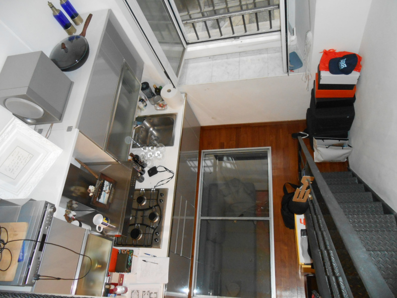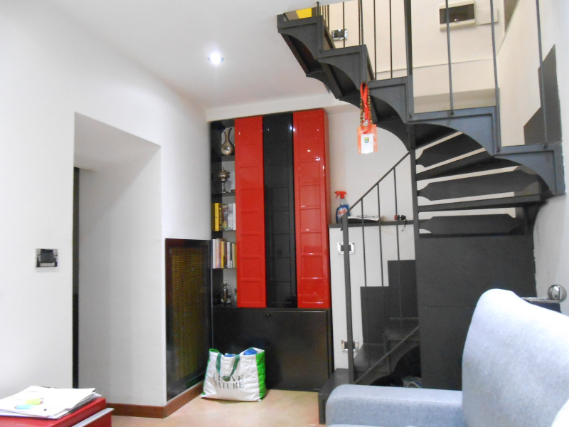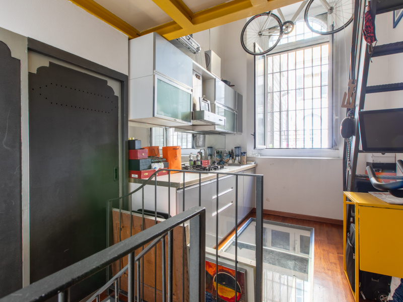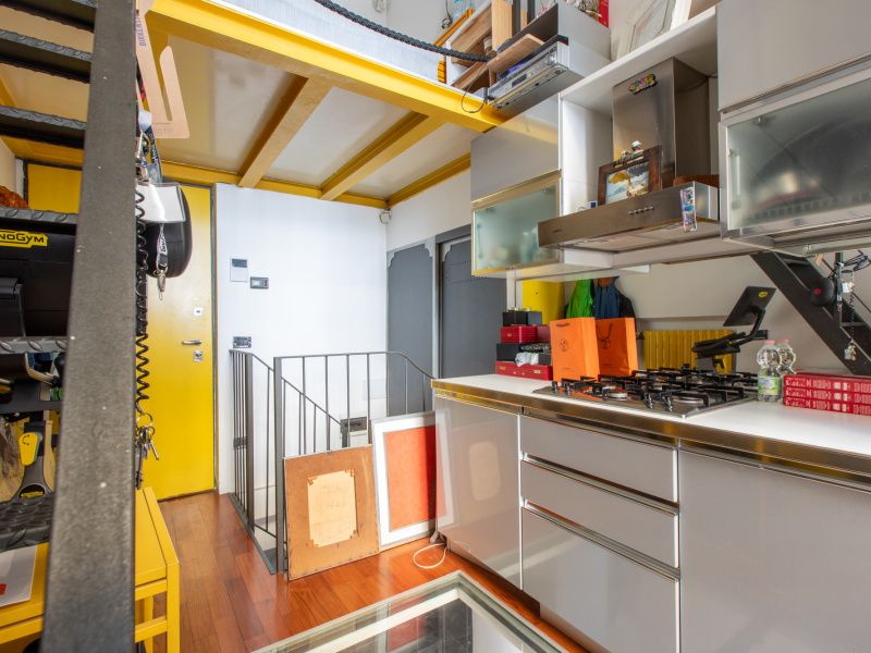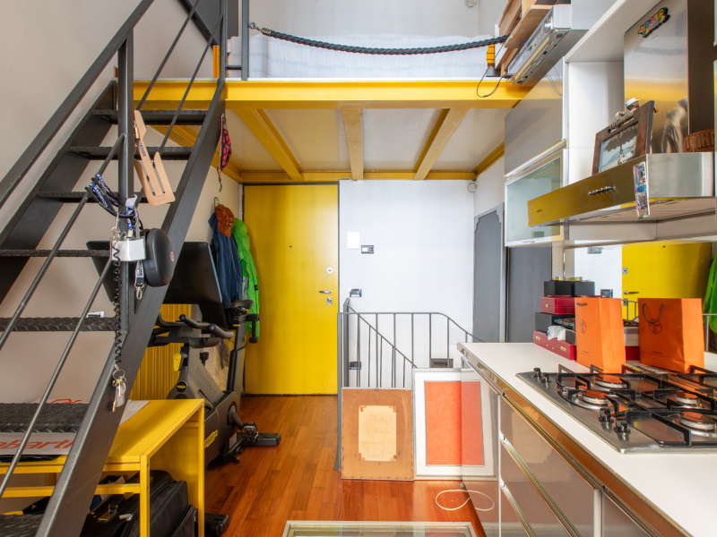 accesso diretto al locale cucina/pranzo di altezza di mt. 4,20 dotato di finestra molto alta con infisso in alluminio con doppio vetro, salita al ripostiglio in quota fissato con putrelle al momento utilizzato dalla proprietà come zona notte di misure di mt. 2,40 x 1,80 con altezza di mt. 1,97.