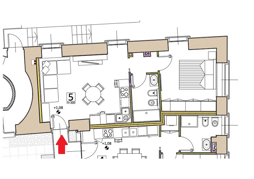 Appartamento di nuova realizzazione con ingresso indipendente dal cortile interno di un palazzo d’epoca signorile composto da: Piano rialzato: ingresso, soggiorno con cucina a vista, camera matrimoniale, bagno con vasca, cantina.
