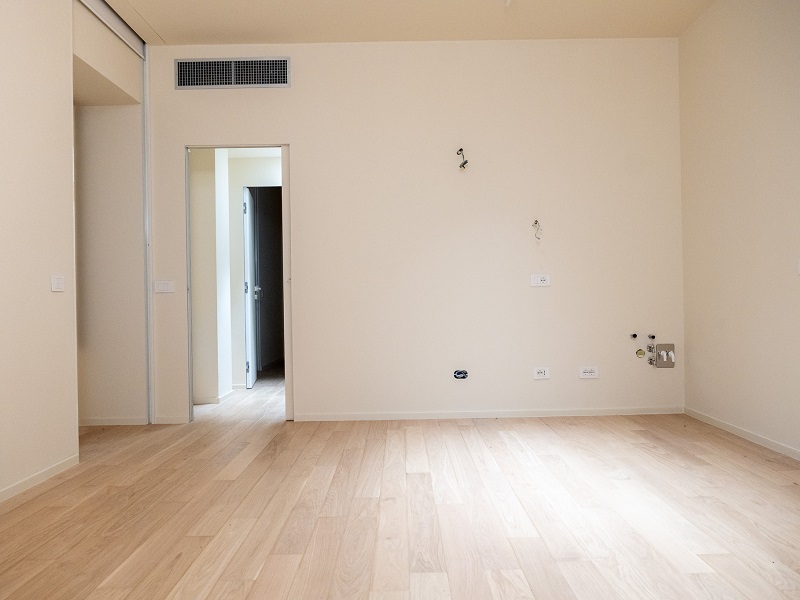 La pavimentazione in parquet Rovere Europeo e le piastrelle di gres porcellanato previste nel capitolato conferiscono all’immobile un’atmosfera elegante e raffinata.