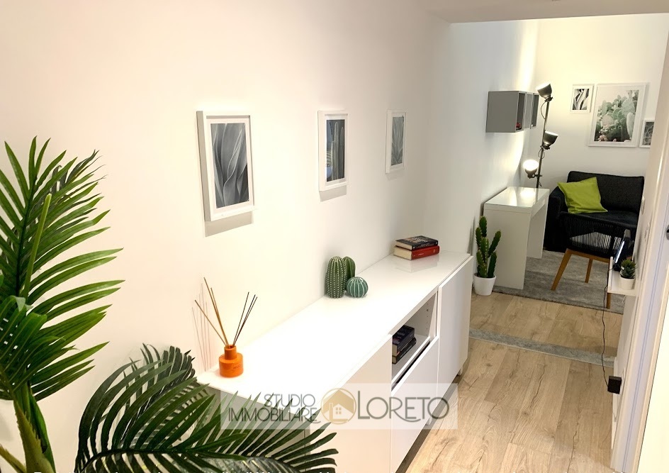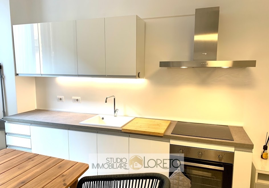 Ingresso, soggiorno con moderna cucina a vista totalmente attrezzata.