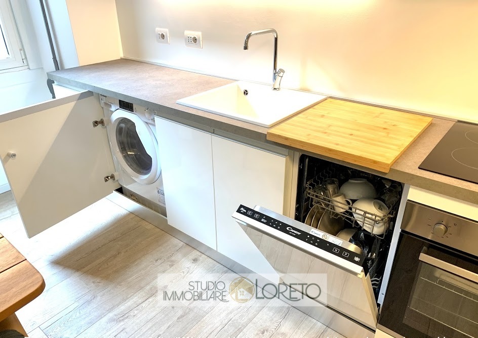 lavatrice/asciugatrice, lavastoviglie, forno, fuochi ad induzione e televisore.