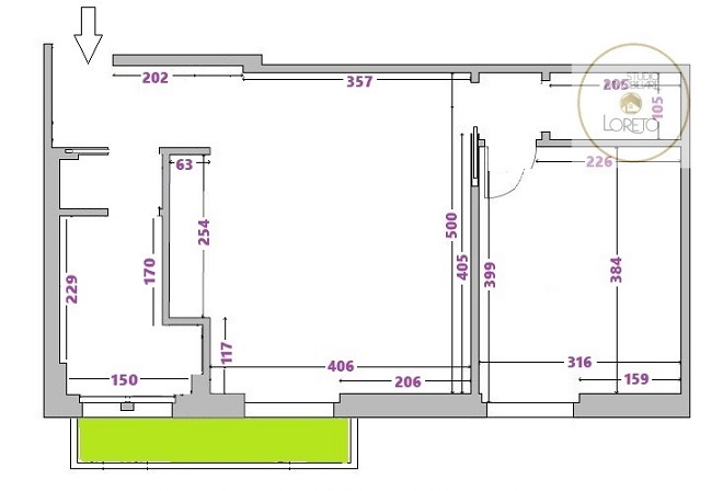 UNITA’ LUMINOSISSIMA. Ingresso, soggiorno con predisposizione alla cucina a vista, accesso al balcone (con splendida vista panoramica sui grattacieli di Porta Nuova), camera matrimoniale, CABINA ARMADIO e bagno finestrato con doccia.