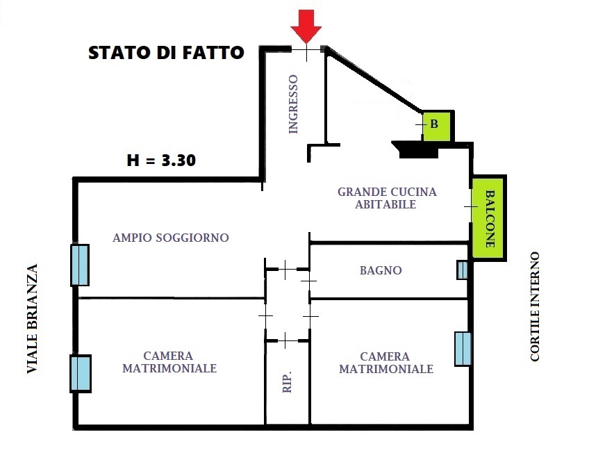 Ingresso, ampio soggiorno con affaccio sull’alberata Viale Brianza, spaziosa cucina abitabile con accesso al balcone, DUE camere matrimoniali, un bagno FINESTRATO, un comodo e grande ripostiglio e completa la proprietà un solaio di pertinenza.