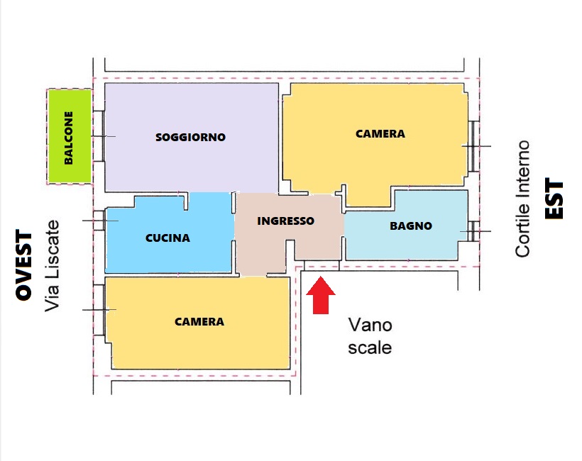 La doppia esposizione, interna ad EST ed esterna ad OVEST permette un’ottima luminosita’ e ricambio d’aria.