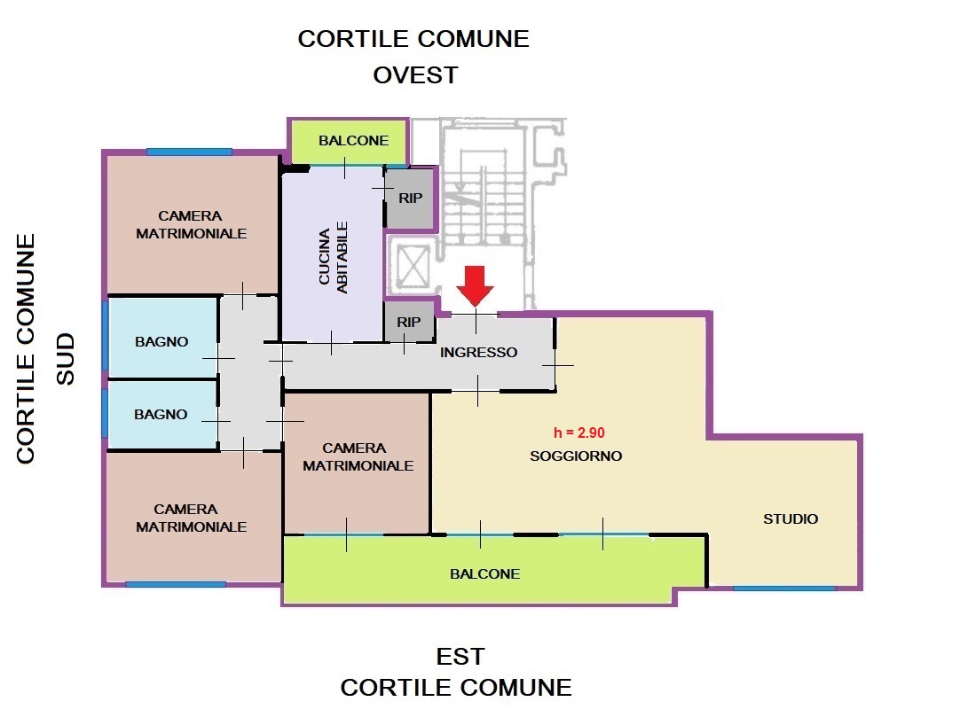 AL PIANO SECONDO CON TRIPLA ESPOSIZIONE (SUD-EST ED OVEST).