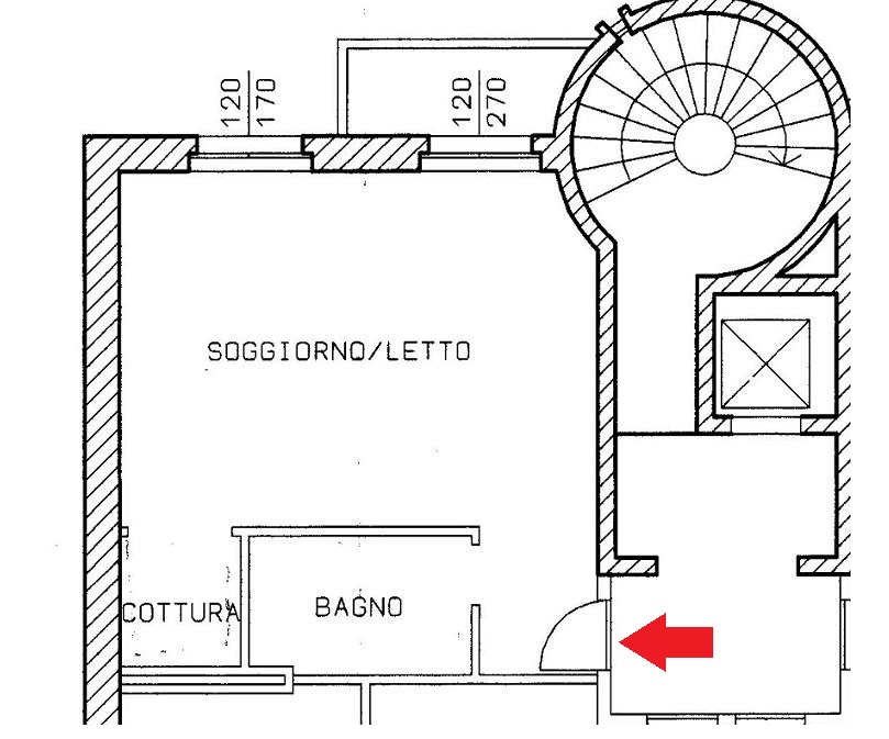In piccolo condominio di soli tre piani con ASCENSORE. Al piano terzo ed ultimo; ingresso, zona giorno/notte con due finestre e BALCONE, zona cottura ad induzione, bagno con box doccia, spaziosissimo ripostiglio in quota e CANTINA.