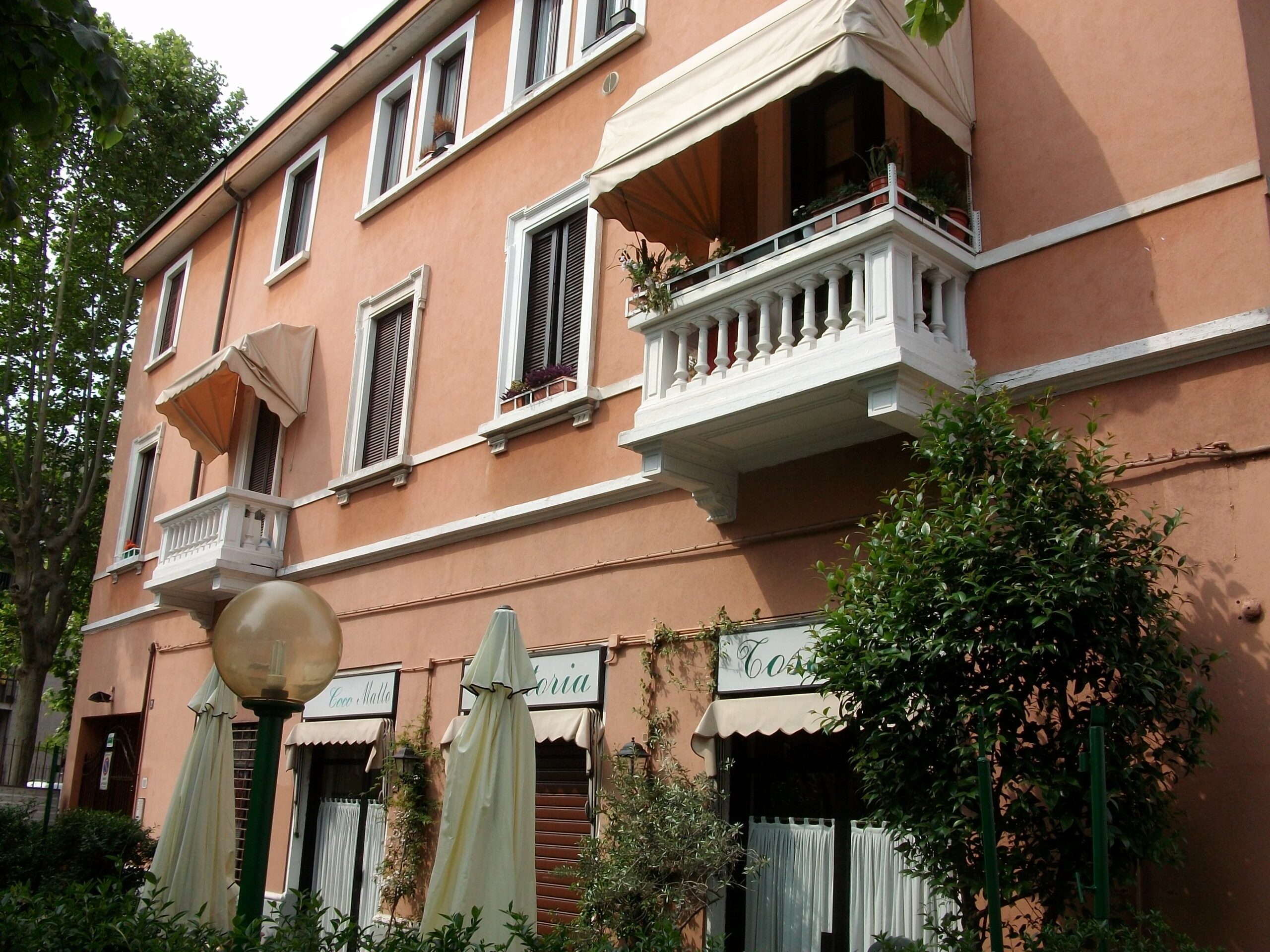 Cortile condominiale con parcheggio per biciclette. Via priva di traffico e molto silenziosa.